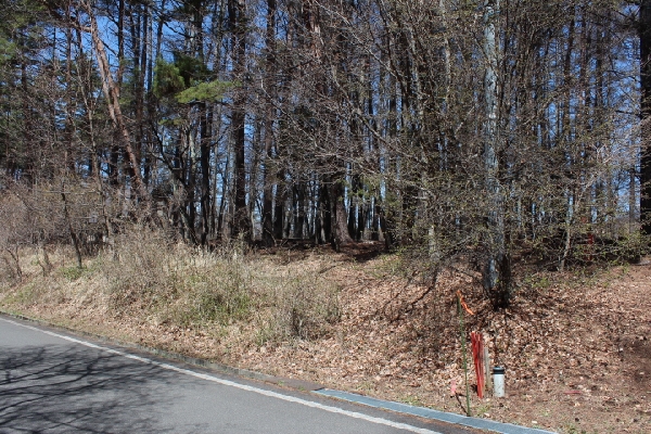 敷地北側から蓼科山を遠望。陽当たりの良い土地。