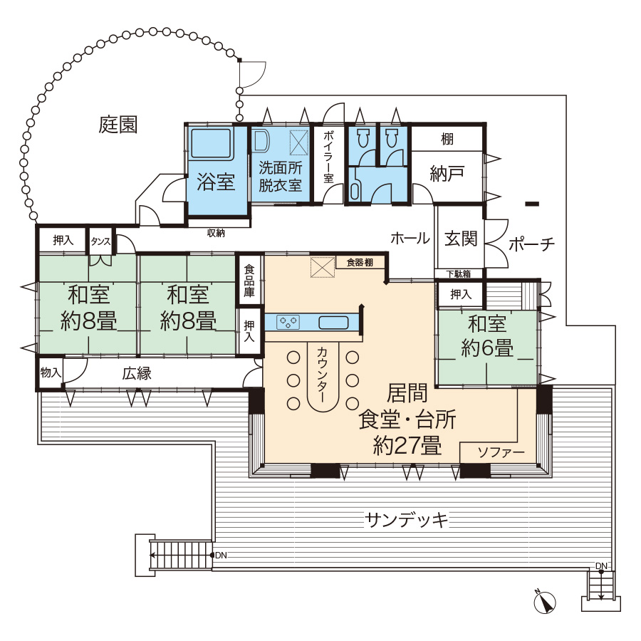 南西緩傾斜地の閑静な森に佇む平屋建別荘。